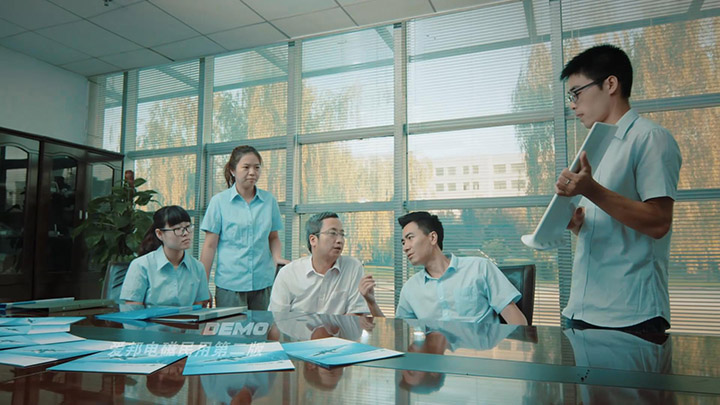 那么英朗传播作为对创新有要求的宣传片拍摄公司,又是怎么面对这些问题的呢?打一开始,各种艰难的心理准备是有的。比如片头如何创意,企业更加中意的概念、形象的设计,保密部分的展示方案等等。一般高科技企业会更加青睐于使用一些辅助动画来展示比较艰涩的原理,我们甚至一开始就对原创的原理动画做了必要的准备工作。不过后来,出乎意料的是,爱邦电磁的创意双方一致坚持使用纯实拍作为本片的风格。显然这是非常正确的方案,片子出来后,得到了同行和甲方的一致好评,大家对性价比进行评估后,觉得这是一个很不错的片子。